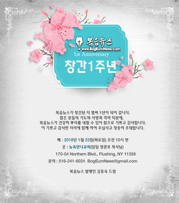 복음뉴스 창간 1주년 감사 예배 및 기념식 초청장