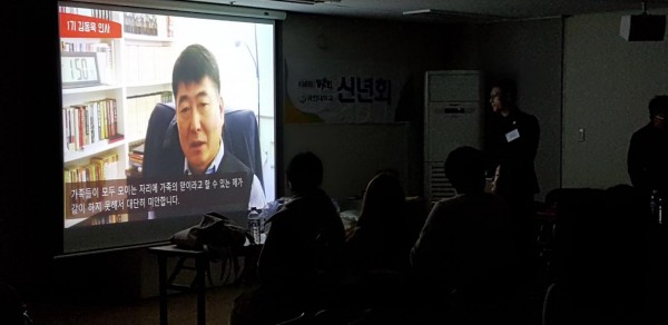 2018 KMBBS(국민대학교방송국동문회) 신년회 영상 인사를 시청하고 있는 후배들