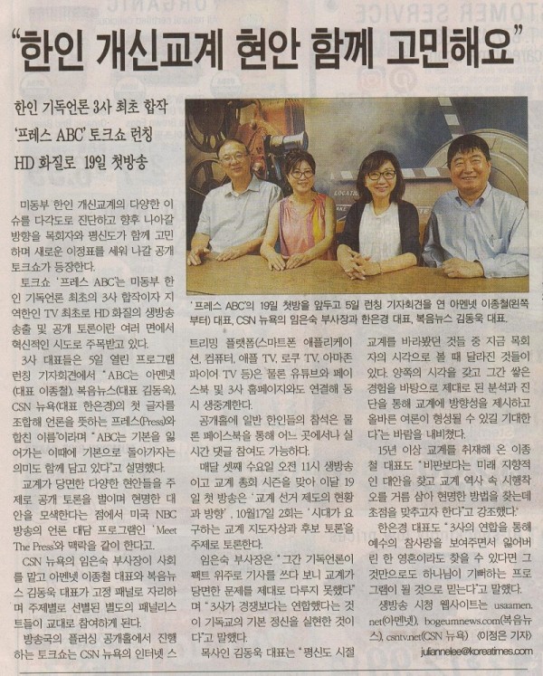 2018년 9월 7일 금요일 자 뉴욕한국일보 종교면