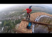 '아찔'… 256m 굴뚝 위에서 외발자전거를?